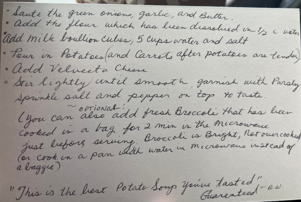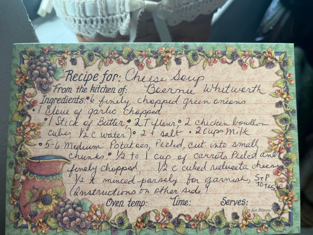 My dear friend Boernie warned, “Never go to bed with a messy kitchen or dishes in the sink. It draws bugs”. This is something that goes without saying, but my first apartment was a very old house-turned-duplex that was built in the early 1920’s. I could hear all kinds of scuffling in the rafters, and it had roaches but this is what I could afford at the time. It was an unbelievable $250 per month rent, which I split with my roommate, so it came to $125 each. Boernie, who had a wealth of love and wisdom, also gave me the best cheese soup recipe EVER!