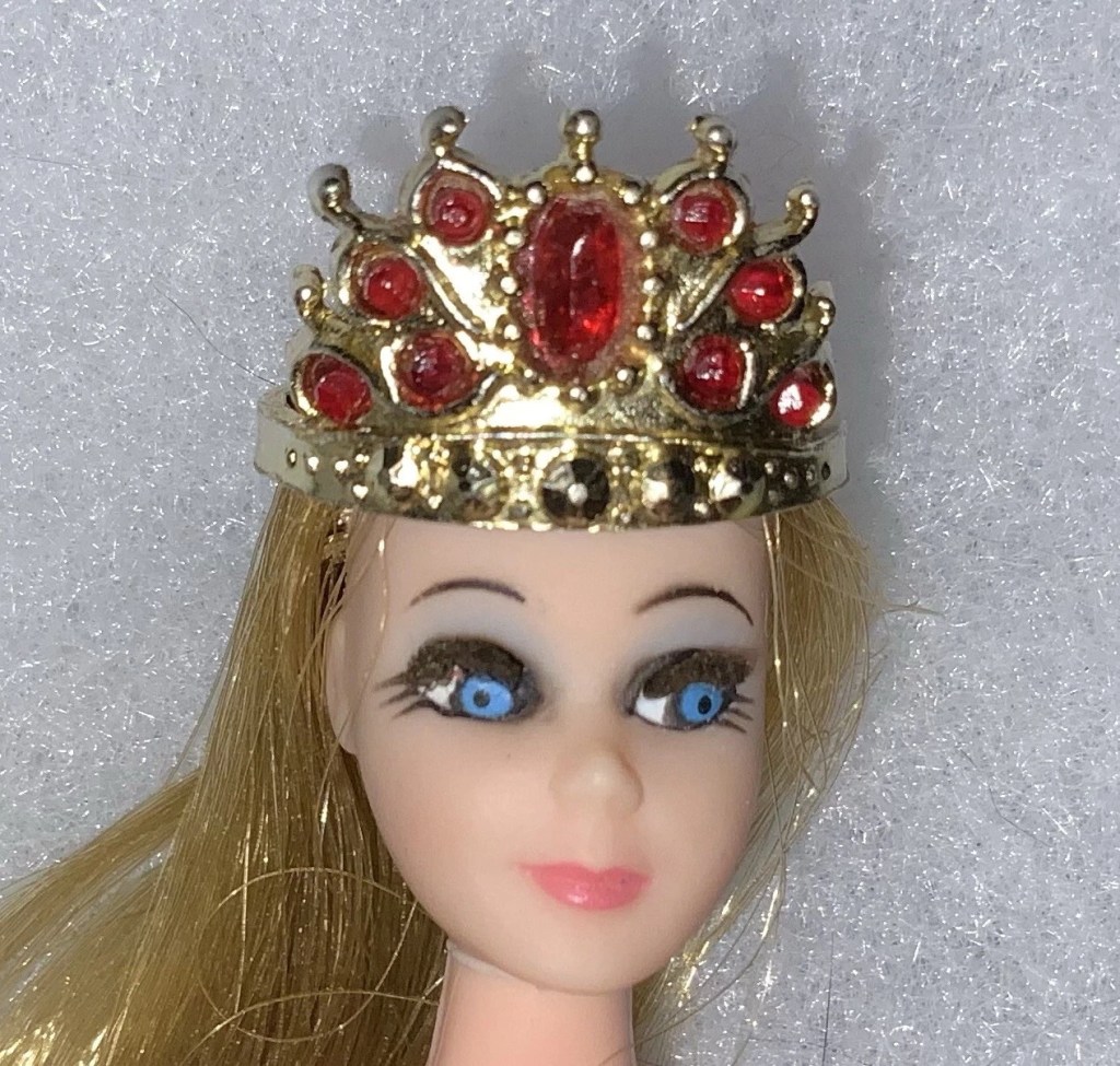 My mom had bought me a set of small pink and purple buttons, each with a different letter of my first name, it was waiting as a surprise for me one day when I returned from school; This goes to show that a tiny gift can go a long way into the heart of a child. I always loved putting a tiny bouquet of real flowers in any kind of miniature vase, (especially a mini milk bottle shaped vase.);a three inch treasure chest that doesn’t open- from grandmother Mimi); a wooden treasure box my dad made as a boy, he had taped it together with red tape to give it designs. A miniature crown for a Dawn Doll;