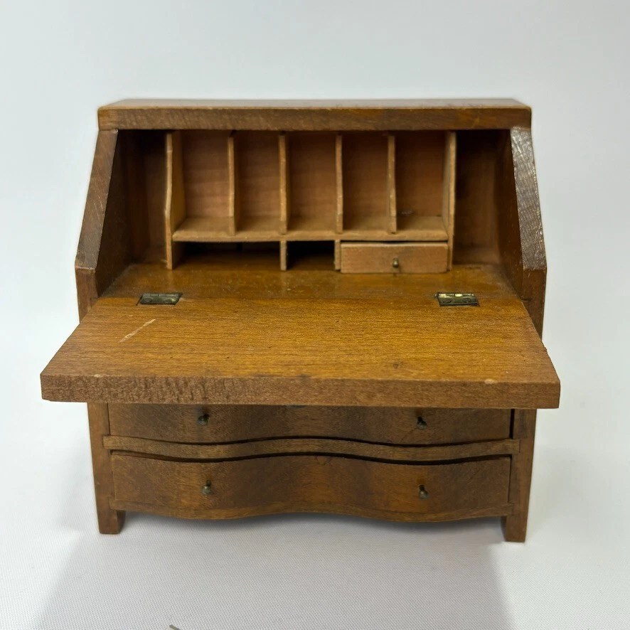 Funnily enough, another student, who did not know Patrick, a little girl would sometimes stay later if her lesson was finished and she was not picked up yet. I lived with Susie. We were two girls in our twenties living in an old 1920’s house-turned-duplex. My bedroom had been the dining room of the original home. It had a gorgeous cedar hutch built into the corner of the would be dining area, that was now a bedroom. The corner hutch gave me lots space to place special things on display, such as a rustic violin made by my Grandfather, some dried flowers, and special vases my grandmother gave me, and a wooden box that had been my dad’s as a boy. On the bottom shelf was a display of little bears, that look similar to today’s Calico critters, (they may have been the first rendition). And, also some pink and blue wooden furniture for them to sit. But most beautiful of all was an antique 1:6 scale, wooden secretary desk that might fit a doll about the size of Blythe. It had real drawers that opened and shut, and cubby places for letters. It was tremendously cute and had belonged to my grandmother. My student used to play with the small critters with the pink and blue balsa furniture. But she asked me if she could have my 1:6 scale secretary desk.