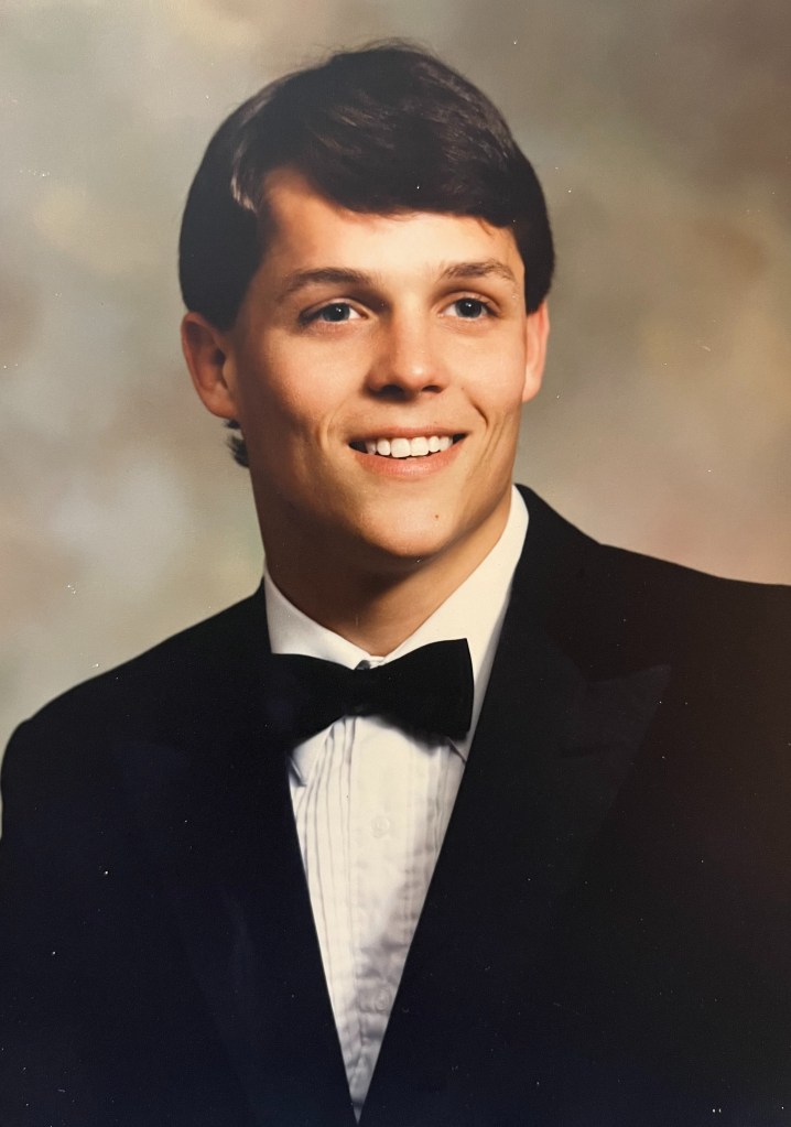 I thought about him constantly. I carried his photo with me to school. His senior picture was neatly tucked in my Bible. It was a picture of him wearing a tux. During the mundane school days, it was a pleasant indulgence to pull out his portrait and have a good long stare. “Yes I pondered, when ARE we getting married? Distracted from studying I wrote in my spiral notebook the name “Laura Acheson” all down the page.