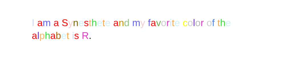 If you have synesthesia, I would love it if you would add something in the comments about what type you have, what colors you see for letters or numbers and or music. Or, if you have a different type please share. I would love to learn more about it.