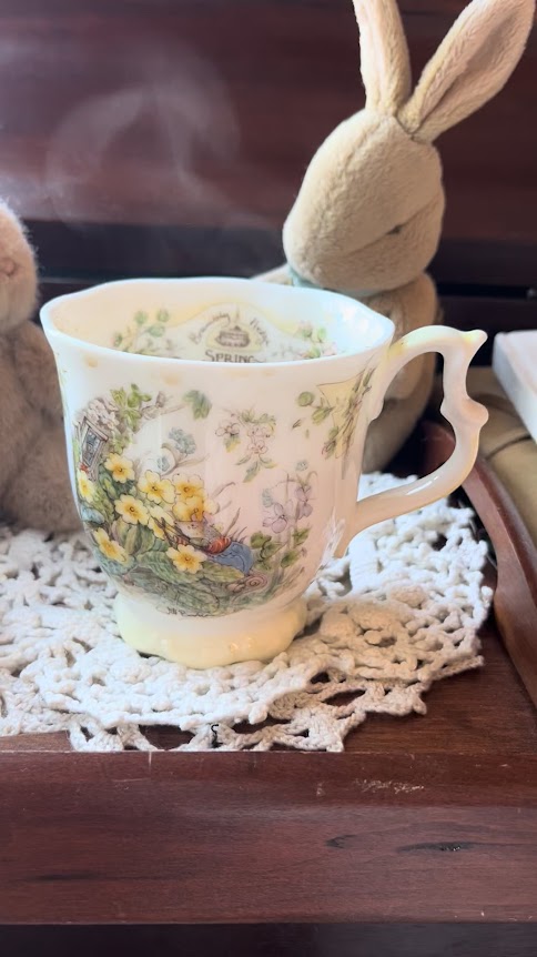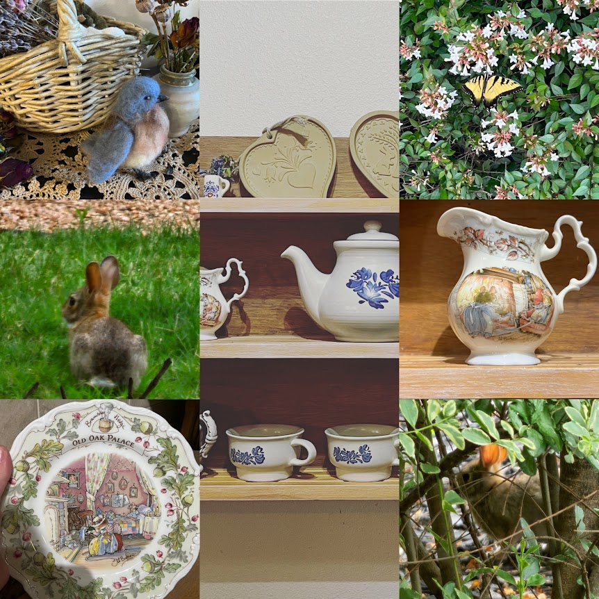 Featured above, 1980’s “Summer” plates, by Jill Barklem, and “Winter” thimble featuring Brambly Hedge mice.