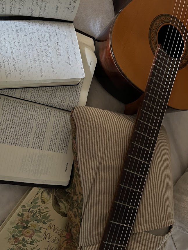 Enjoying a good book! (This is a very OLD copy of The House at Pooh Corner by A.A. Milne, that my dad gave to me.)